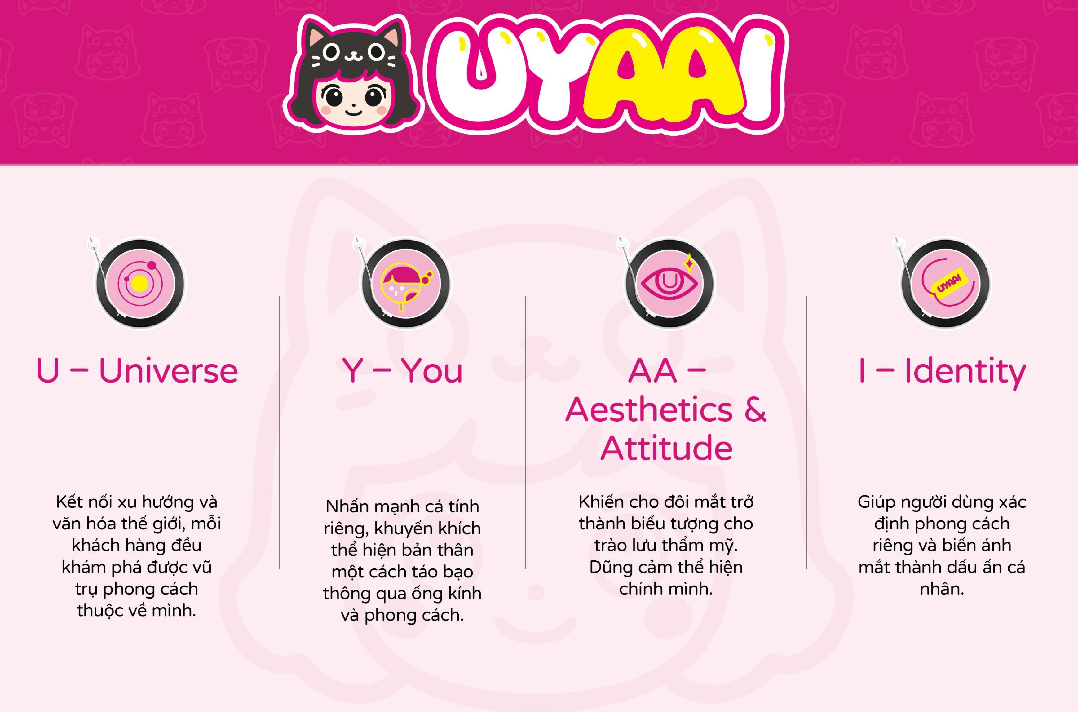 UYAAI là hiện thân của sự thể hiện bản thân này. Mỗi cặp kính áp tròng mang năng lượng của cá tính, kết nối trạng thái tinh thần, cảm xúc và phong cách của một người—và để đôi mắt tự do thể hiện nhịp điệu độc đáo của riêng mình.